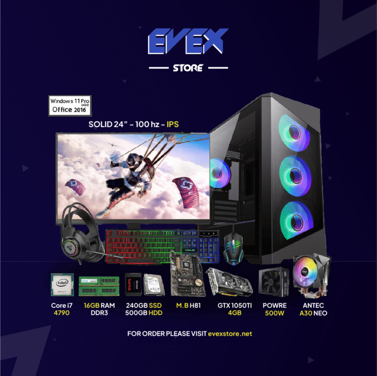 Evex Gaming PC – Core i7 4790 | GTX 1050 Ti | 16GB RAM | 24″ IPS Monitor