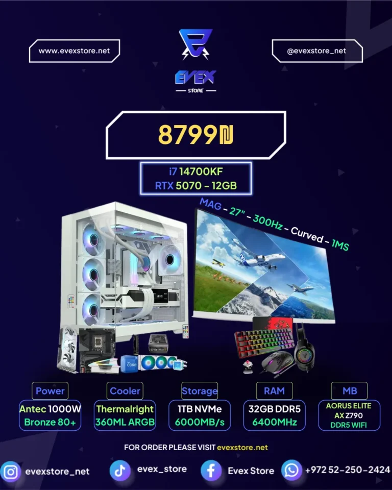 Evex Gaming PC – RTX 5070 – i7 14700KF – MAG 27″ 300Hz 1Ms