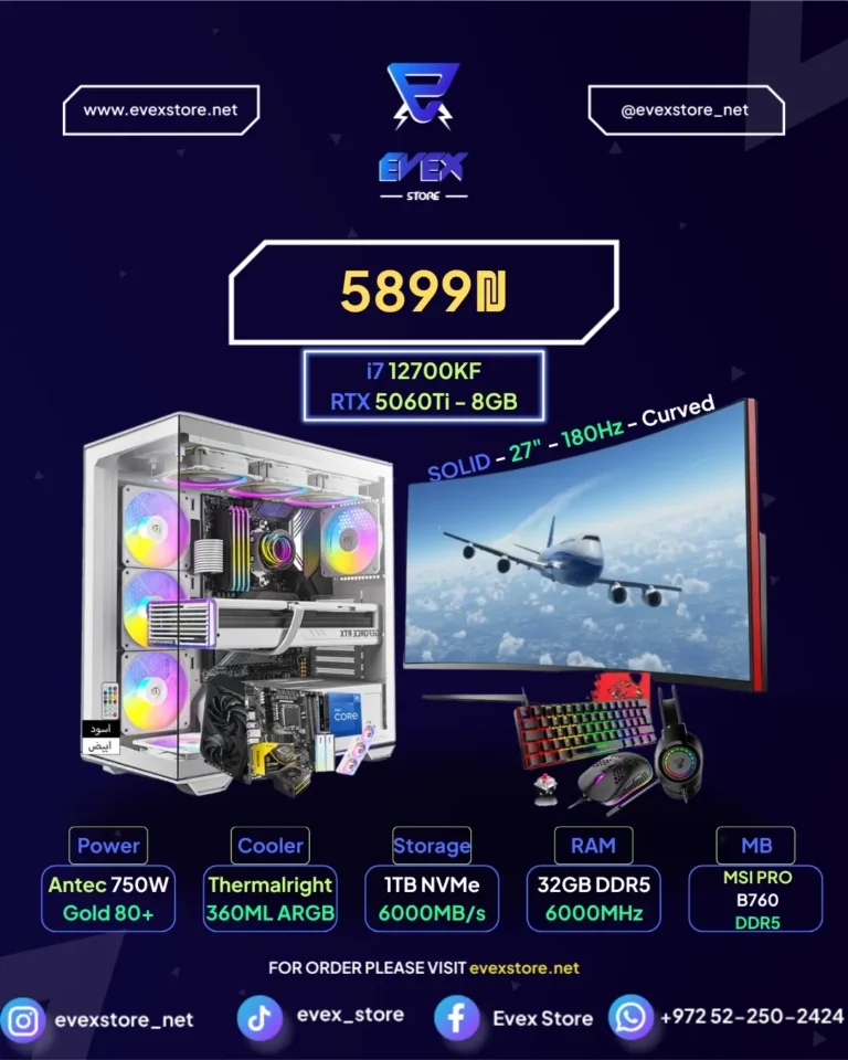 Evex Gaming PC – RTX 5060Ti – i7 12700KF – Solid 27′ 180Hz