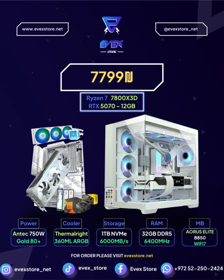 Evex Gaming PC – RTX 5070 – Ryzen 7 7800X3D